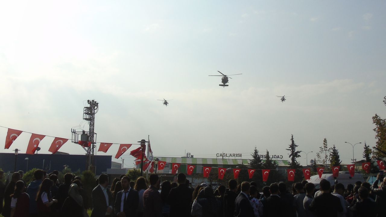 Askeri helikopterlerin saygı uçuşuyla devam eden program, öğrencilerin şiir okuması ve ilçenin düşman işgalinden kurtuluşunu canlandırmasıyla sona erdi.