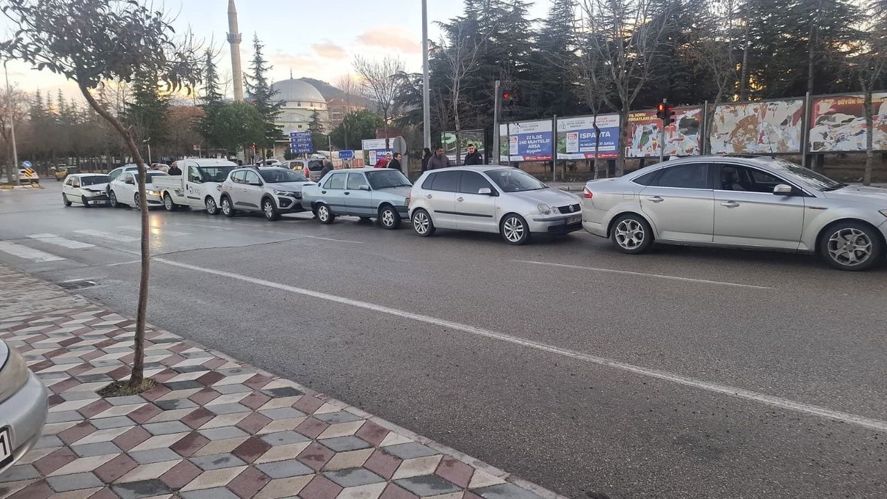 Isparta'da cadde üzerinde otomobilin ani fren yapması sonucu arkasında seyir halinde bulunan 7 otomobil birbirine girdi. Araçlarda maddi hasar oluşurken yaralanan olmadı.