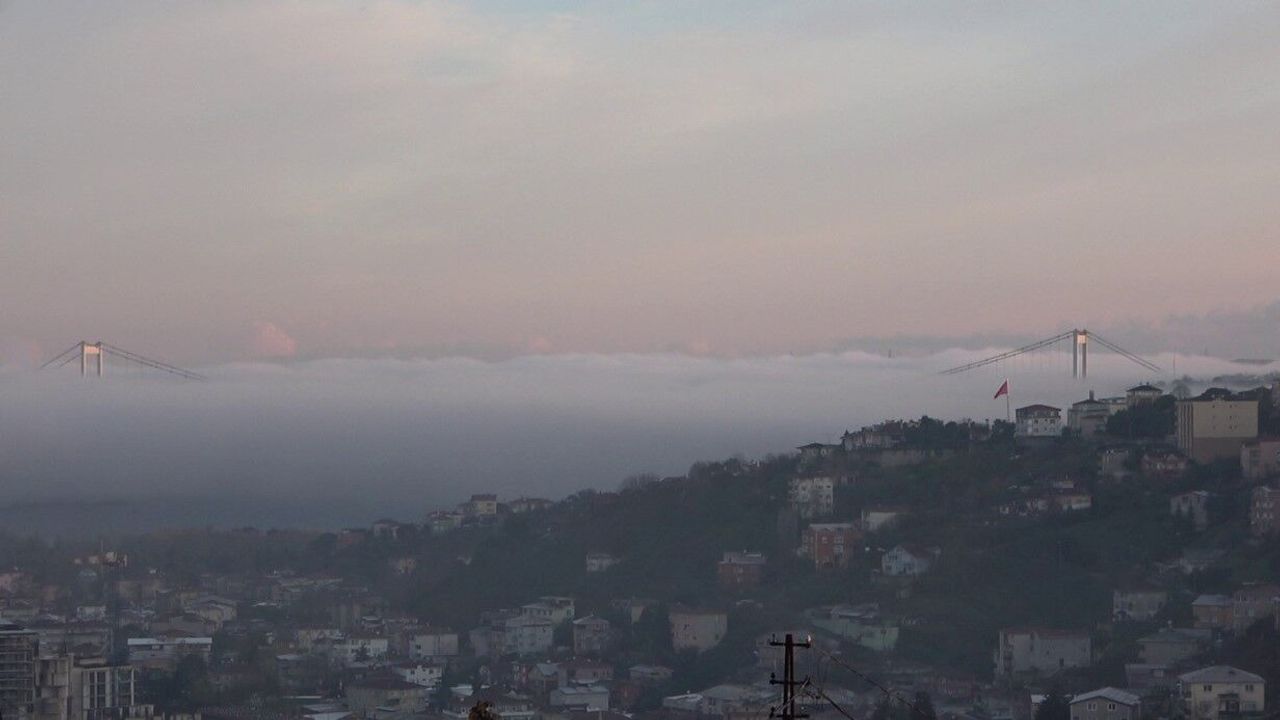 İstanbul Boğazı’nda sabah saatlerinde etkili olan sis nedeniyle görüş mesafesi azaldı, Fatih Sultan Mehmet Köprüsü sis bulutunun içinde kalarak görünmez hale geldi.