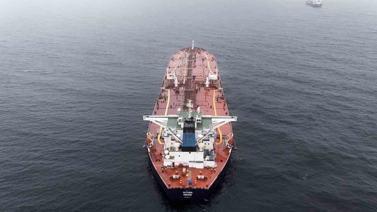 Geçtiğimiz günlerde İstanbul Boğazı'na 14 mil mesafede vurulan Altura isimli tanker havadan görüntülendi.