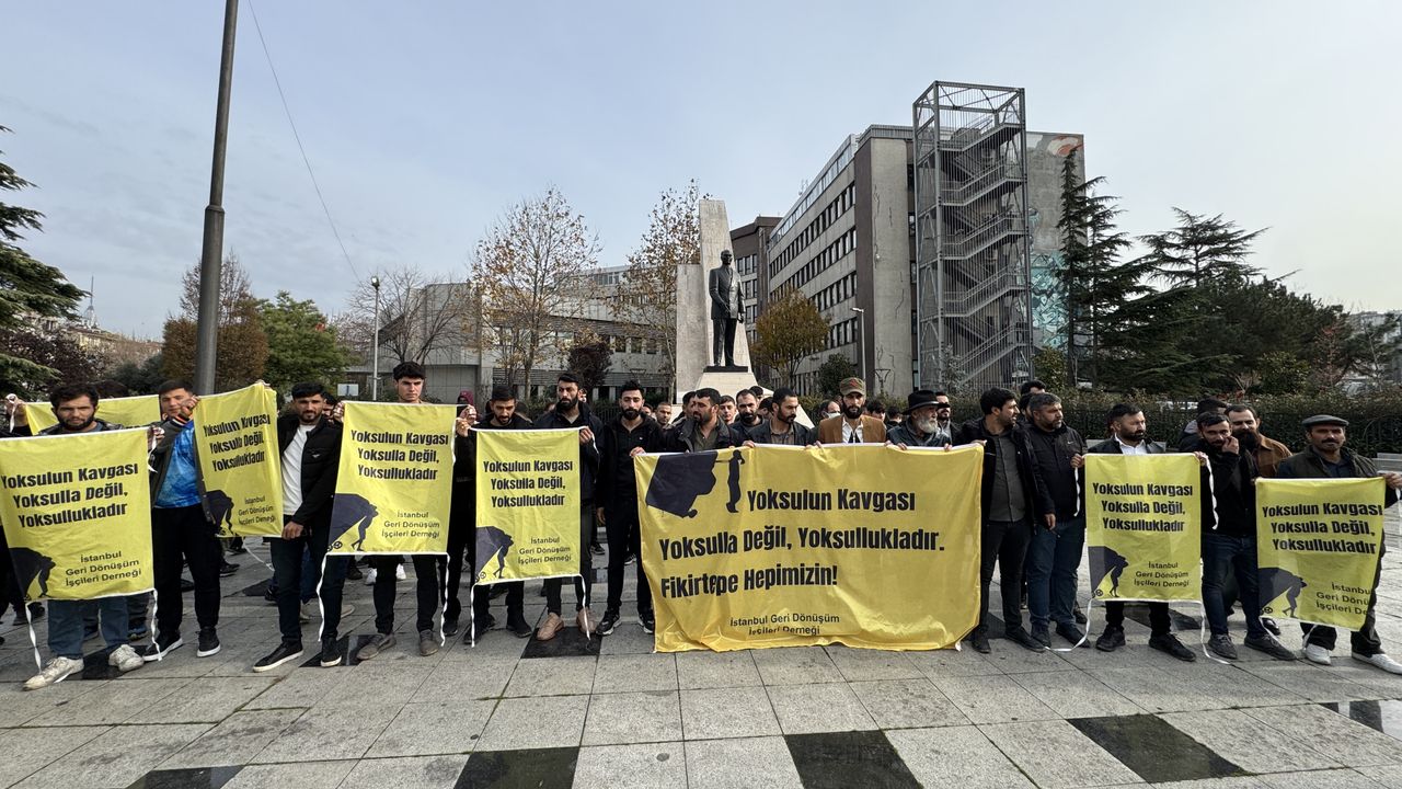 İSTANBUL (AA) - İstanbul Geri Dönüşüm İşçileri Derneği üyeleri, Fikirtepe'deki depolarının boşaltılması tebliğini protesto etti.