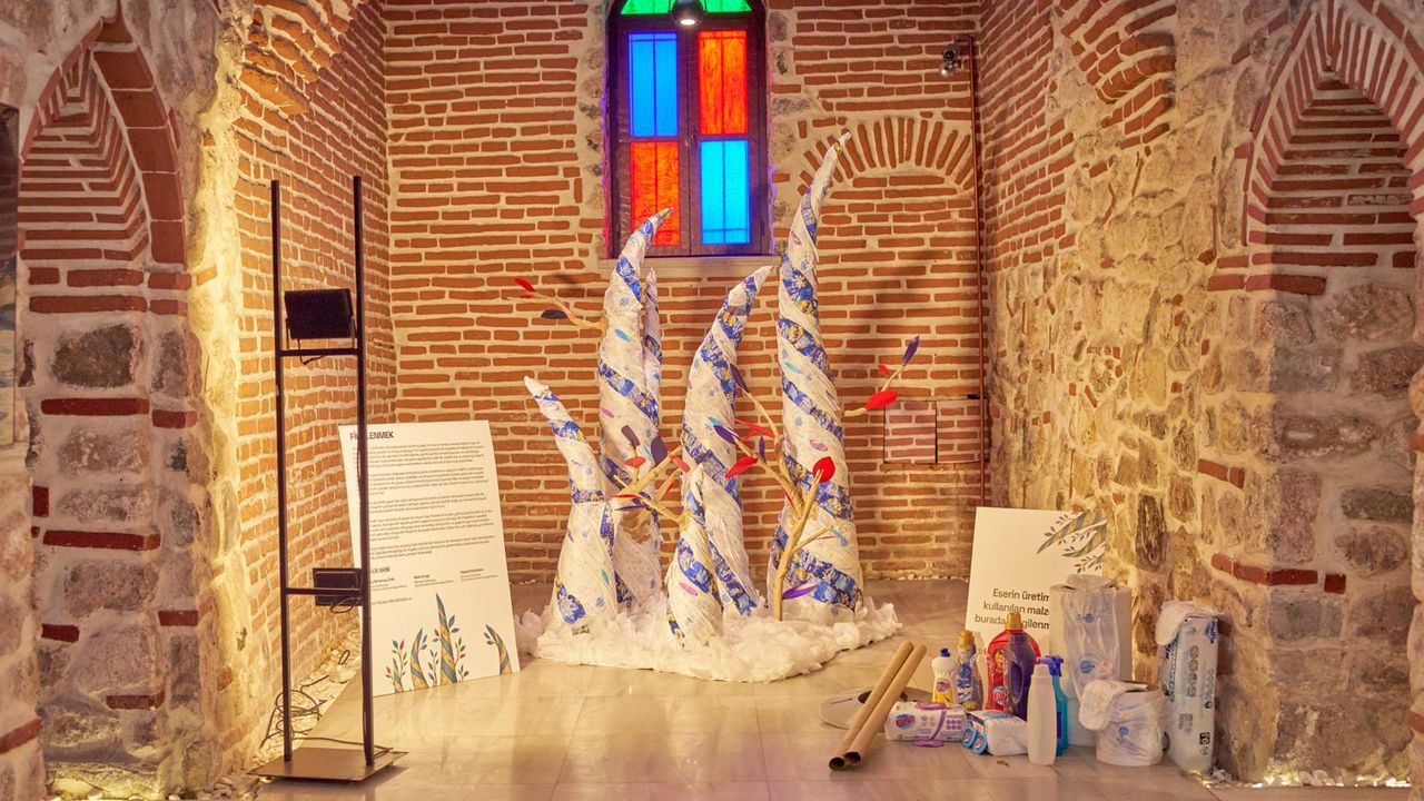 'Art'a Kalan' projesi, üretim süreçlerinden arta kalan materyalleri sanatın yaratıcılığıyla yeniden şekillendiriyor. Hayat Kimya'nın üretim hattından elde edilen malzemelerin dönüştürüldüğü proje kapsamında, Marmara Üniversitesi öğrencileri Altay Nehemya Çelik, Melis İmrağ ve Ayşegül Karababa tarafından 'Filizlenmek' adlı enstalasyon hazırlandı.