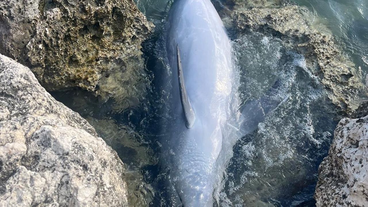 Kuyruğuna balıkçı ağları takıldığı tespit edilen yunusun ölü olduğu anlaşıldı.