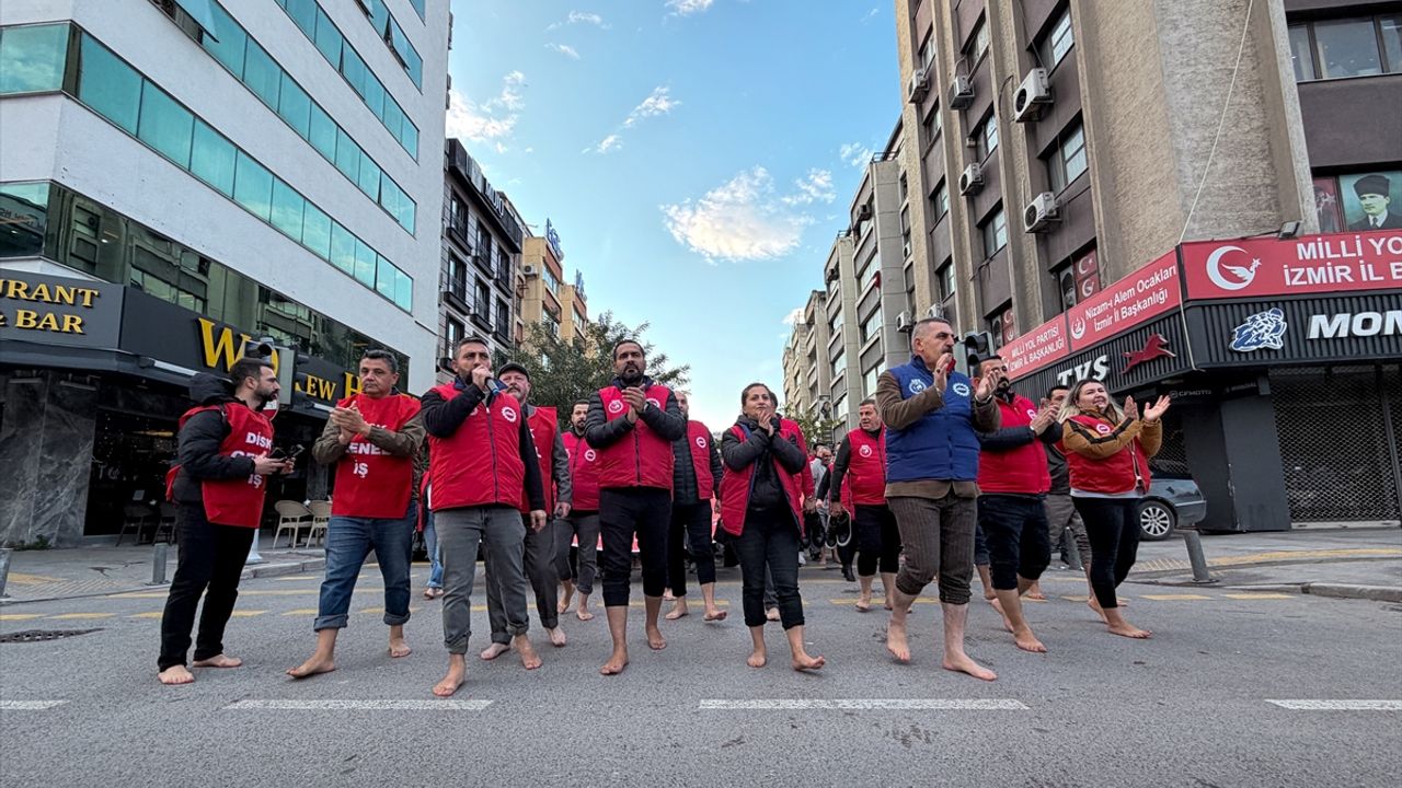 İZMİR (AA) - İzmir Büyükşehir Belediyesi iştiraki şirketlerinden İZDOĞA, İZBETON ve İZULAŞ çalışanları, kasım ayı maaşı ve sosyal haklarının eksik ödenmesi nedeniyle eylem yaptı.
