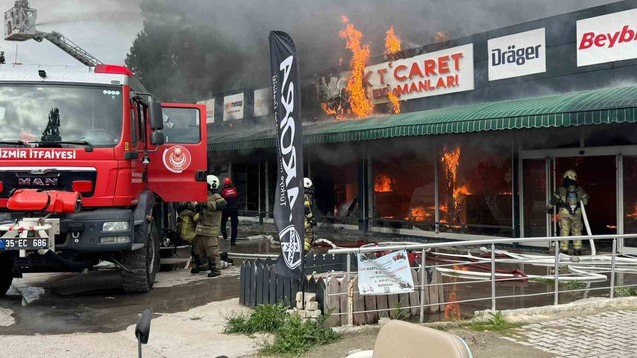 İzmir'in Torbalı ilçesinde iş güvenliği ekipmanları ve elbiseleri satan bir iş yerinde yangın çıktı. İhbar üzerine bölgeye çok sayıda itfaiye, polis ve sağlık ekibi sevk edildi.