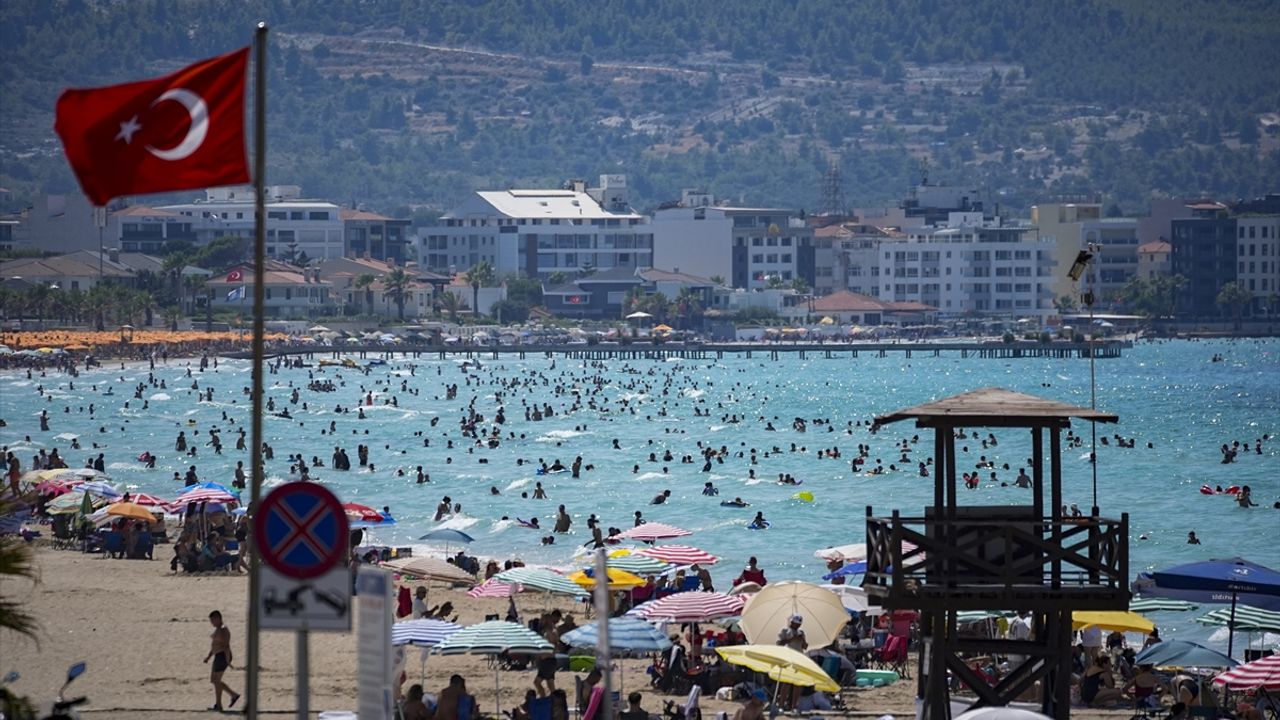 Yerli ve yabancı turistlerin yanı sıra ilçe sakinleri de Çeşme'nin yaklaşık bin 200 metre uzunluğundaki ünlü Ilıca Plajı'nda denize girerek serinlemeyi tercih etti.