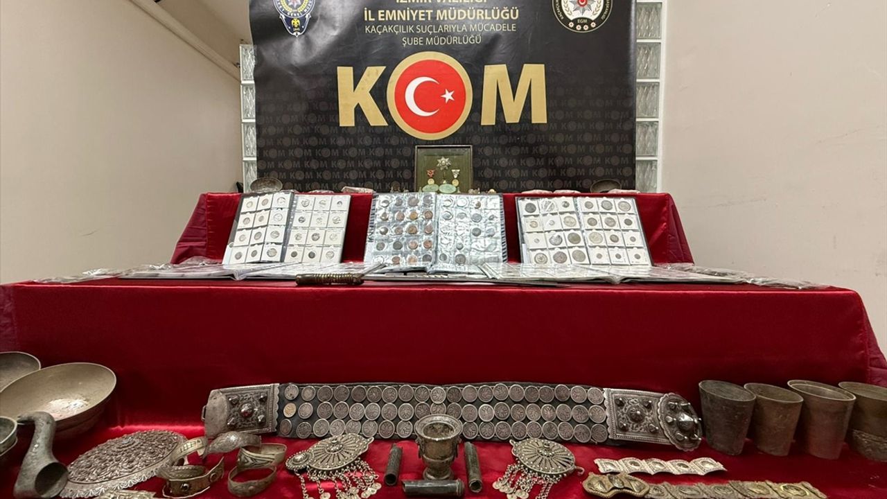 İZMİR (AA) - İzmir'in Karabağlar ilçesinde düzenlenen tarihi eser kaçakçılığı operasyonunda bir ev ve depoda 2 bin 433 obje ele geçirildi.
