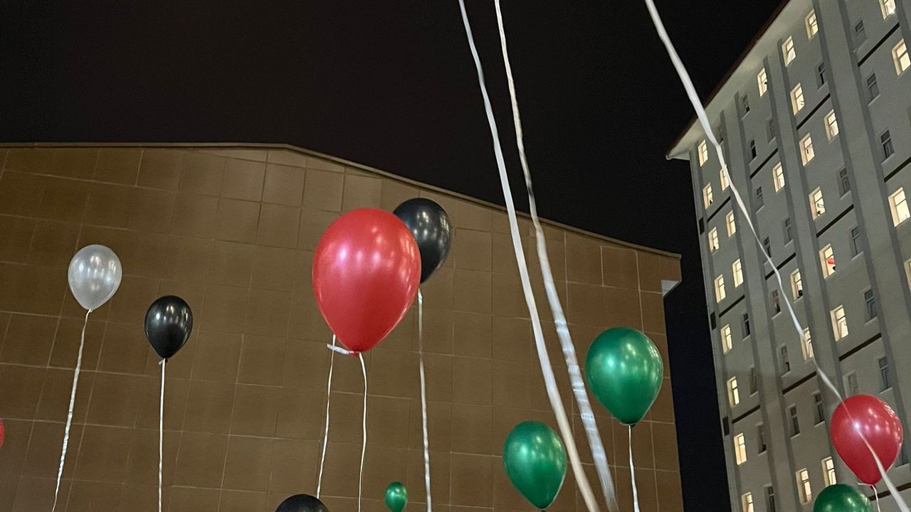 İZMİR (AA) - İzmir'de yurtta kalan üniversiteli kız öğrenciler, İsrail'in Filistin'e yönelik saldırılarına tepki göstermek amacıyla Filistin bayrağının renkleri olan beyaz, kırmızı, siyah ve yeşil balonları gökyüzüne bıraktı.