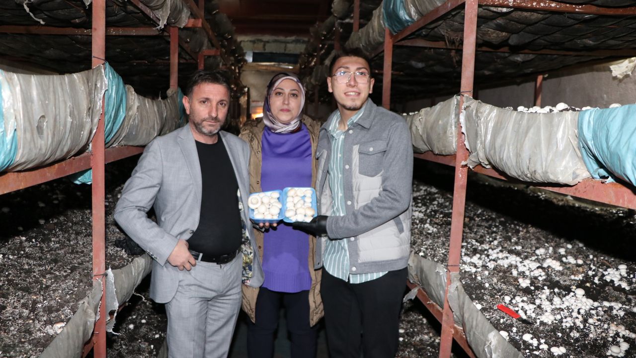 Kentte yaşayan Aktaş, yaklaşık 3 yıl önce ticaretle uğraşan ve kültür mantarı da üreten eşine destek olmak için tesis kurmaya karar verdi.