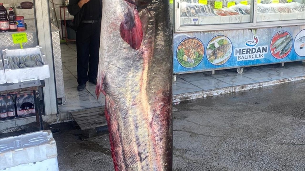 Bir süre sonra ağına büyük bir balık takıldığını fark eden Sarı, yaklaşık 1,5 metre boyunda ve 100 kilogram ağırlığındaki balığı zor da olsa tekneye alarak kıyıya çıkardı.