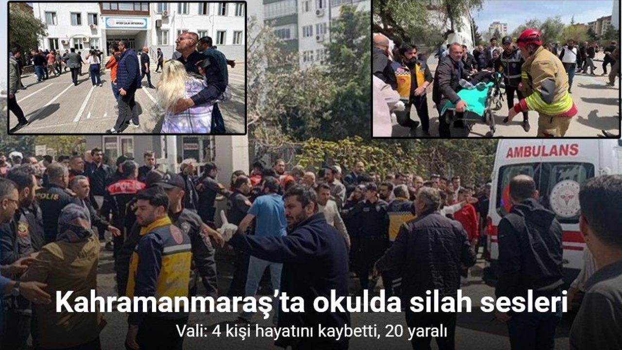 Kahramanmaraş Valisi Mükerrem Ünlüer, okuldaki silahlı saldırıda biri öğretmen 4 kişinin hayatını kaybettiğini, 20 kişinin yaralandığını açıkladı.