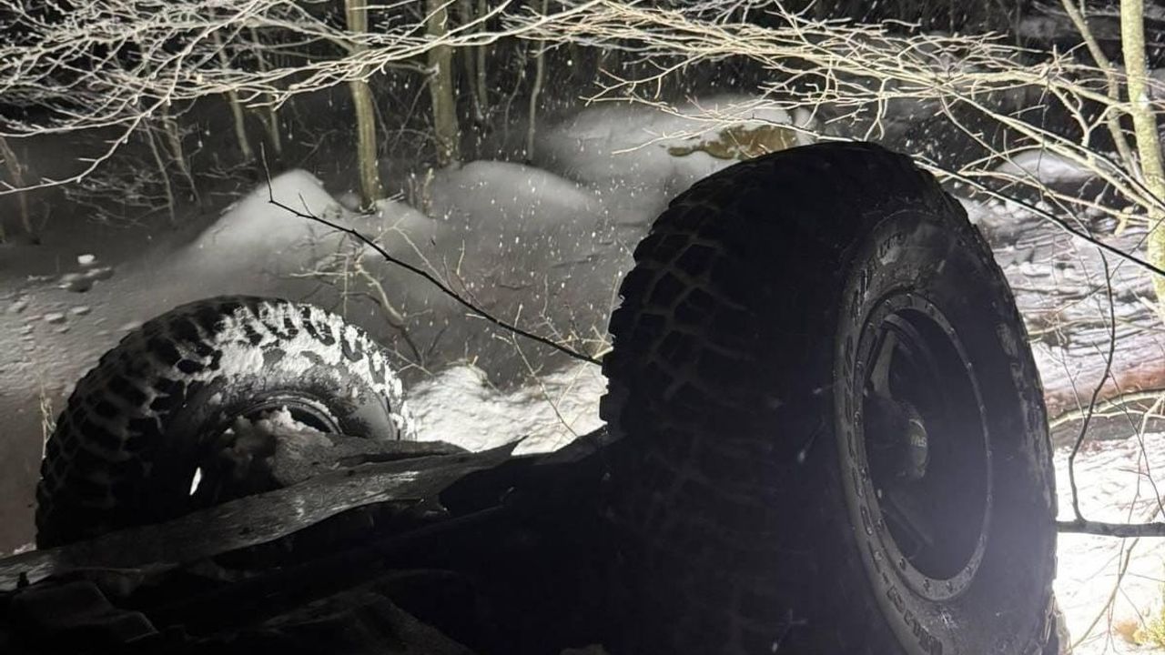 Bursa'nın İnegöl ilçesinde kar yağışı nedeniyle kontrolden çıkan cipin uçuruma yuvarlandığı kazada 5 kişi yaralandı.