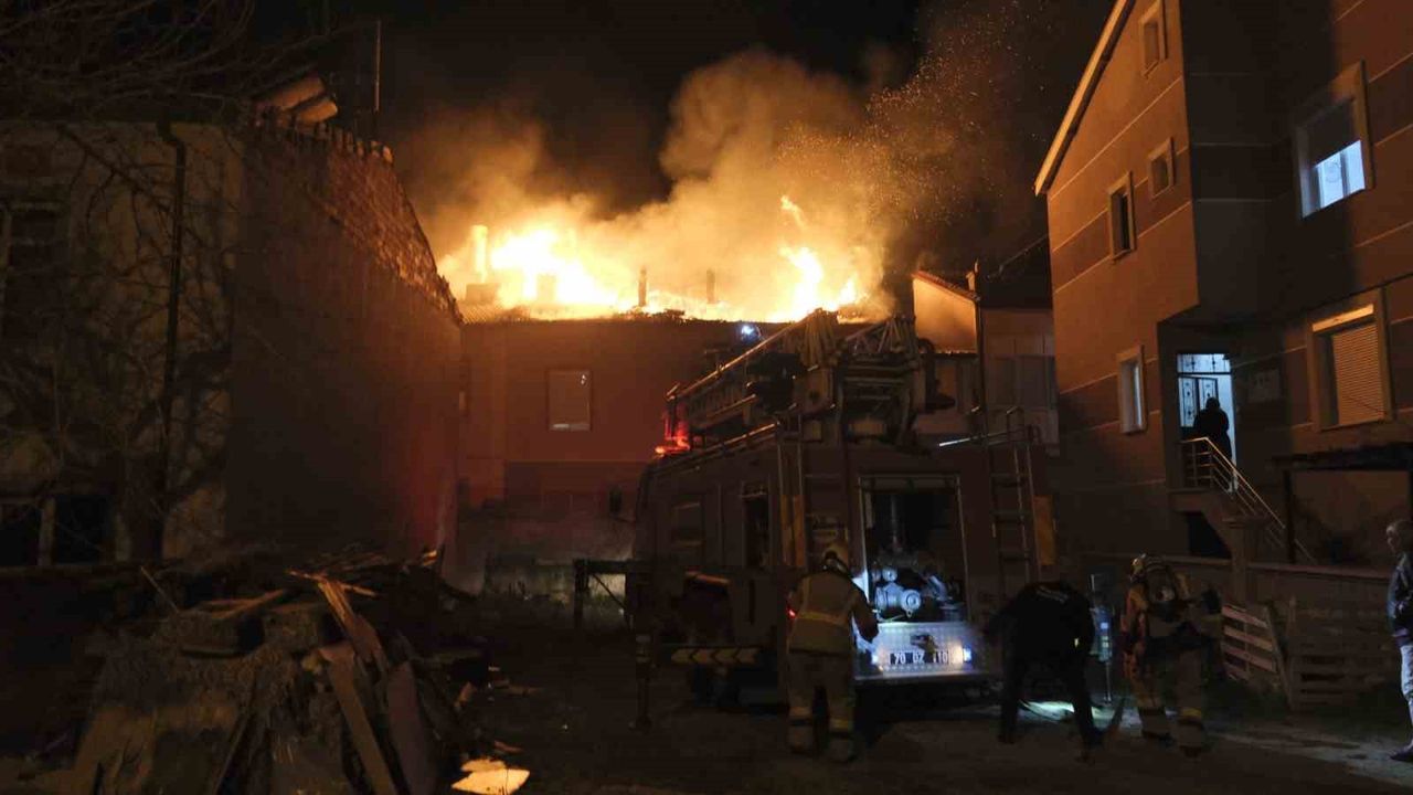 Karaman'da 2 katlı müstakil evin çatısında çıkan yangın geceyi aydınlatırken, mahalle sakinlerini sokağa döktü. Yangında 3 kişi dumandan etkilendi.