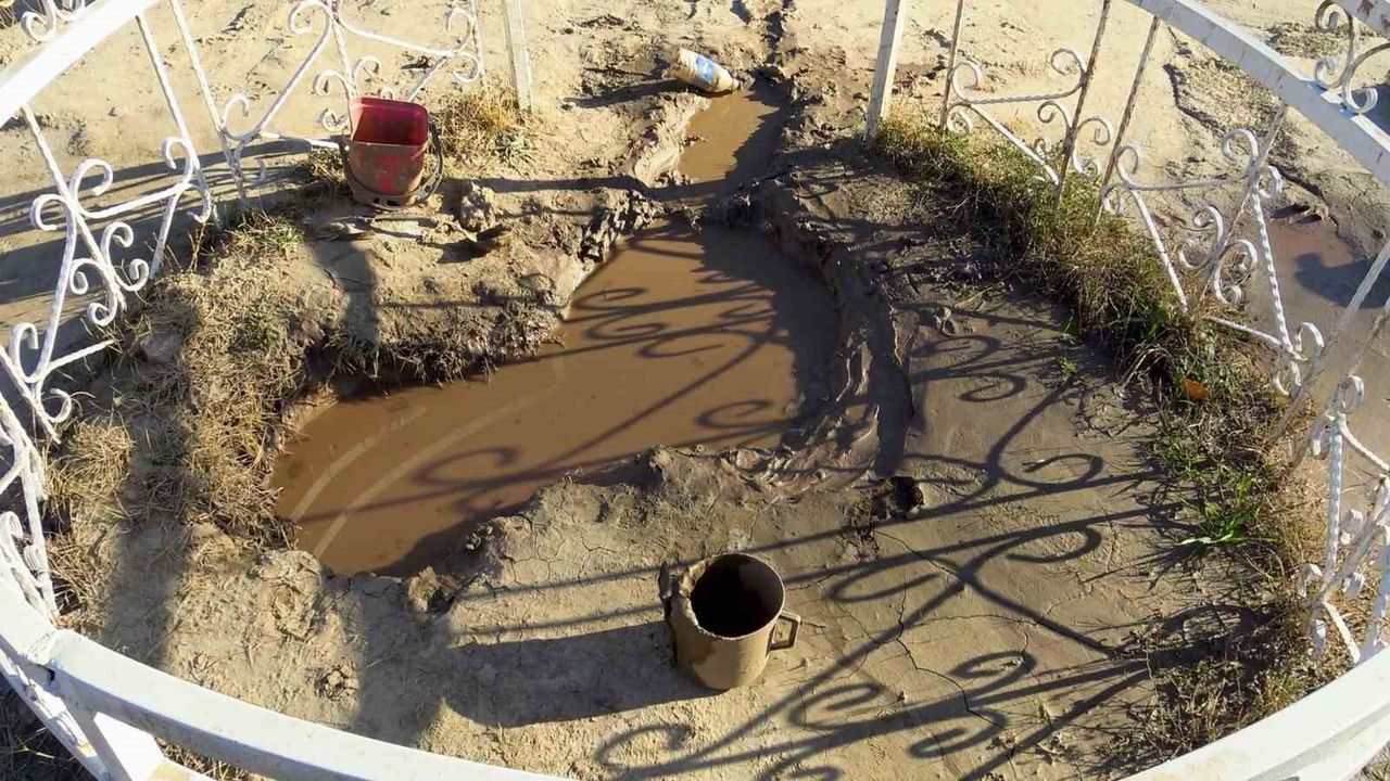 Karaman'ın Sarıveliler ilçesine bağlı Göktepe beldesinde mezarlıkta çıkan ve çeşitli hastalıklara iyi geldiği belirtilen yağlı çamur genellikle yaz aylarında çoğalıyor, ilgi görüyor.