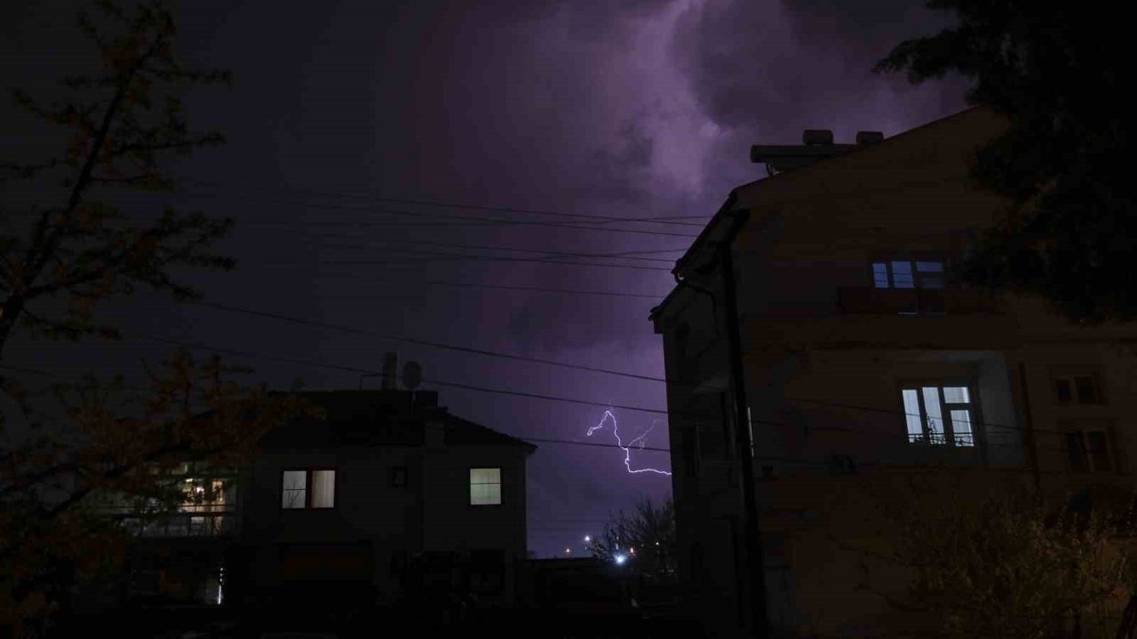 Karaman'da gök gürültülü sağanak yağış uyarısının ardından gece boyu çakan şimşekler gökyüzünde görsel şölen oluşturdu.
