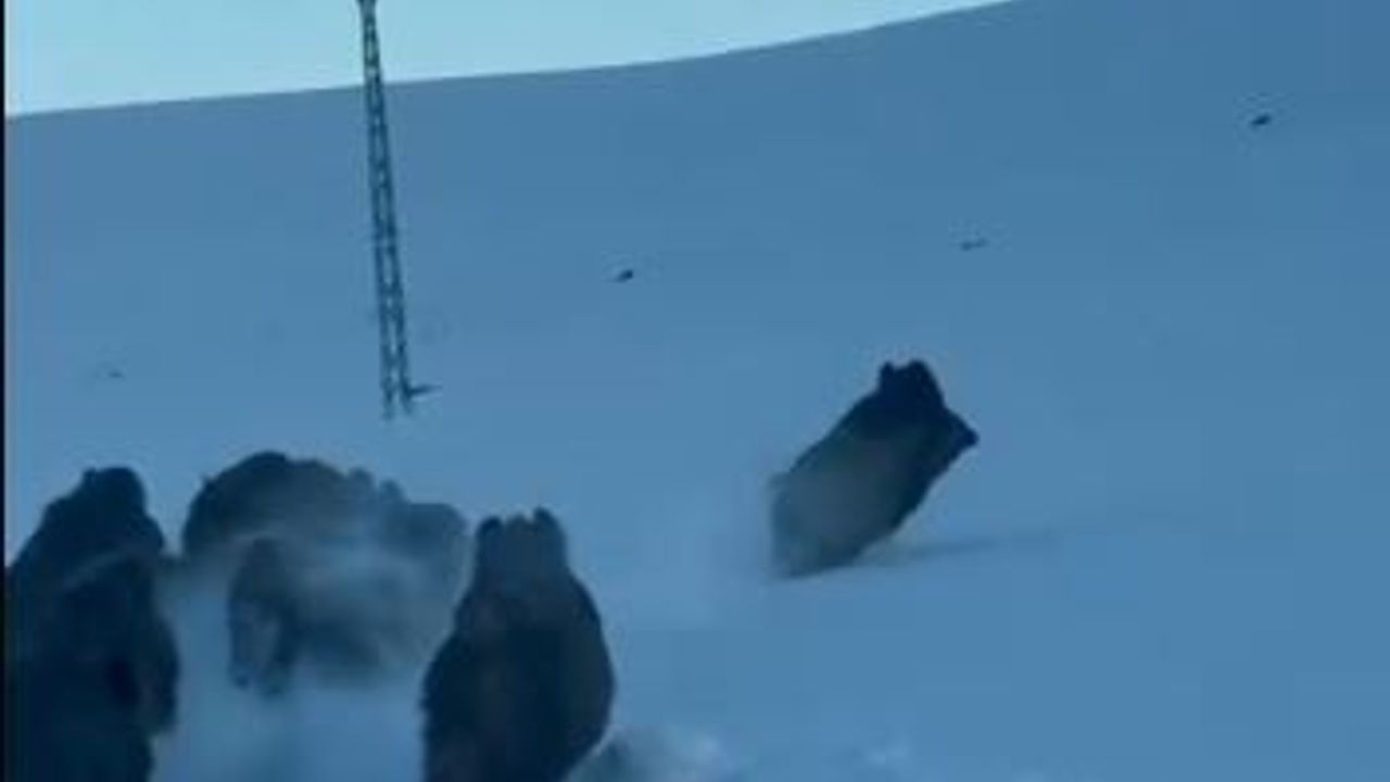 Merkeze bağlı Akyaka köyü yolunda sabah saatlerinde otomobiliyle seyreden Vedat Özgür'ün önüne aniden bir domuz sürüsü çıktı. Yol boyunca ilerleyen domuzlar bir süre aracın önünde koşarak ilerledi. Sürücü Özgür ise hayvanlara zarar vermemek için aracın hızını düşürerek ilerledi. Bir süre sonra yol kenarındaki karla kaplı alana yönelen domuzlar gözden kayboldu. Yaşanan ilginç anlar sürücünün cep telefonu kamerasıyla kayıt altına alındı.
