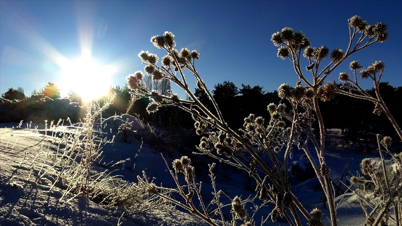 Hava sıcaklığının sıfırın altında 14 dereceye düştüğü Kars'ta bitkiler ve ağaçlar kırağı tuttu, bazı göl ile derelerin yüzeyi buzla kaplandı.