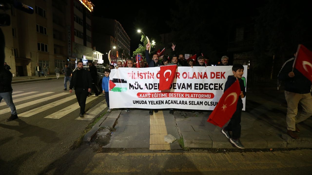 KARS (AA) - Kars'ta, ablukayı kırmak ve insani yardım ulaştırmak amacıyla Gazze'ye doğru yol alan Küresel Sumud Filosu'na İsrail tarafından yapılan saldırılara tepki gösterildi.
