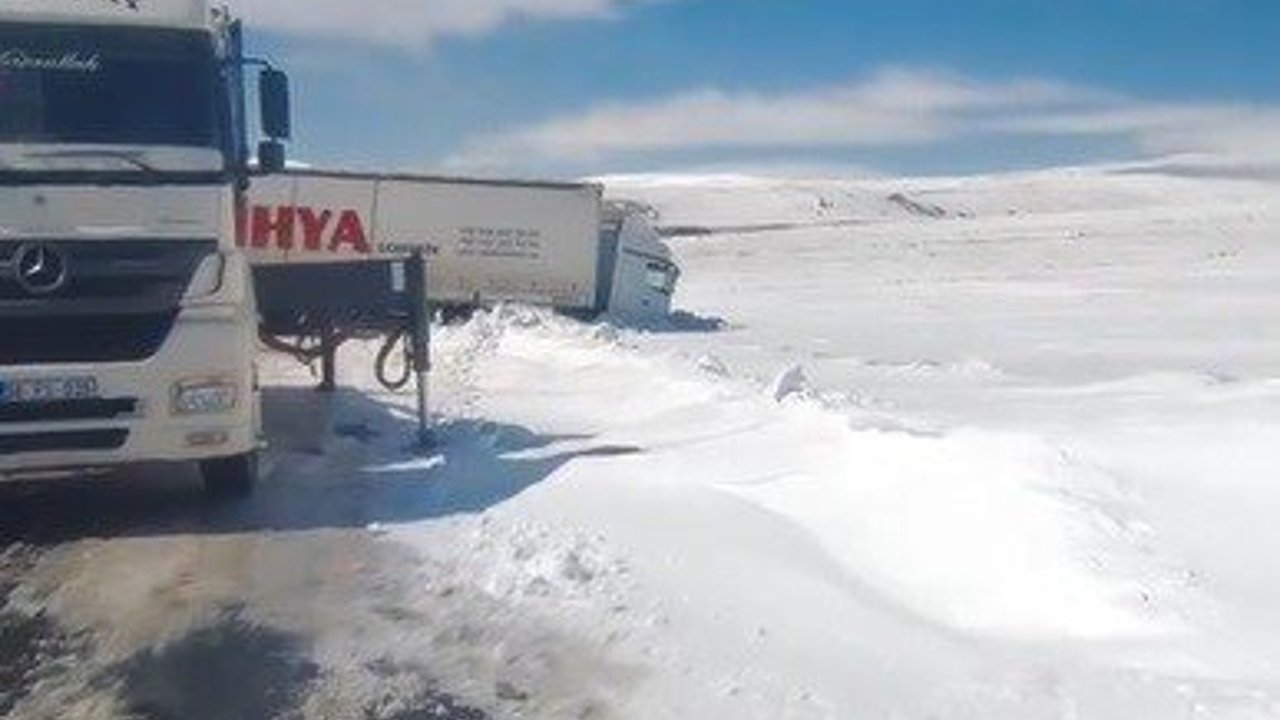 Kars'ta önceki gün yağan kar beraberinde kazaları getirdi. Arpaçay ilçesi Gönülalan köyünde buzlanan yolda sürücüsünün direksiyon hakimiyetini kaybettiği tır, yoldan çıkarak şarampole düştü, dorsesi ise yolu kapatarak trafik akışını engelledi.