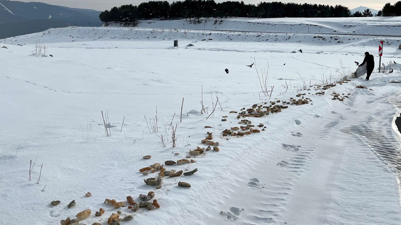 İlçe Müftülüğü ile Türkiye Diyanet Vakfı Sarıkamış Şubesi personeli, merkeze 10 kilometre uzaklıktaki Kızılçubuk bölgesine geldi. Buraya araçlarla getirilen buğday, ekmek ve kemikler karla kaplı doğanın uygun yerlerine bırakıldı.