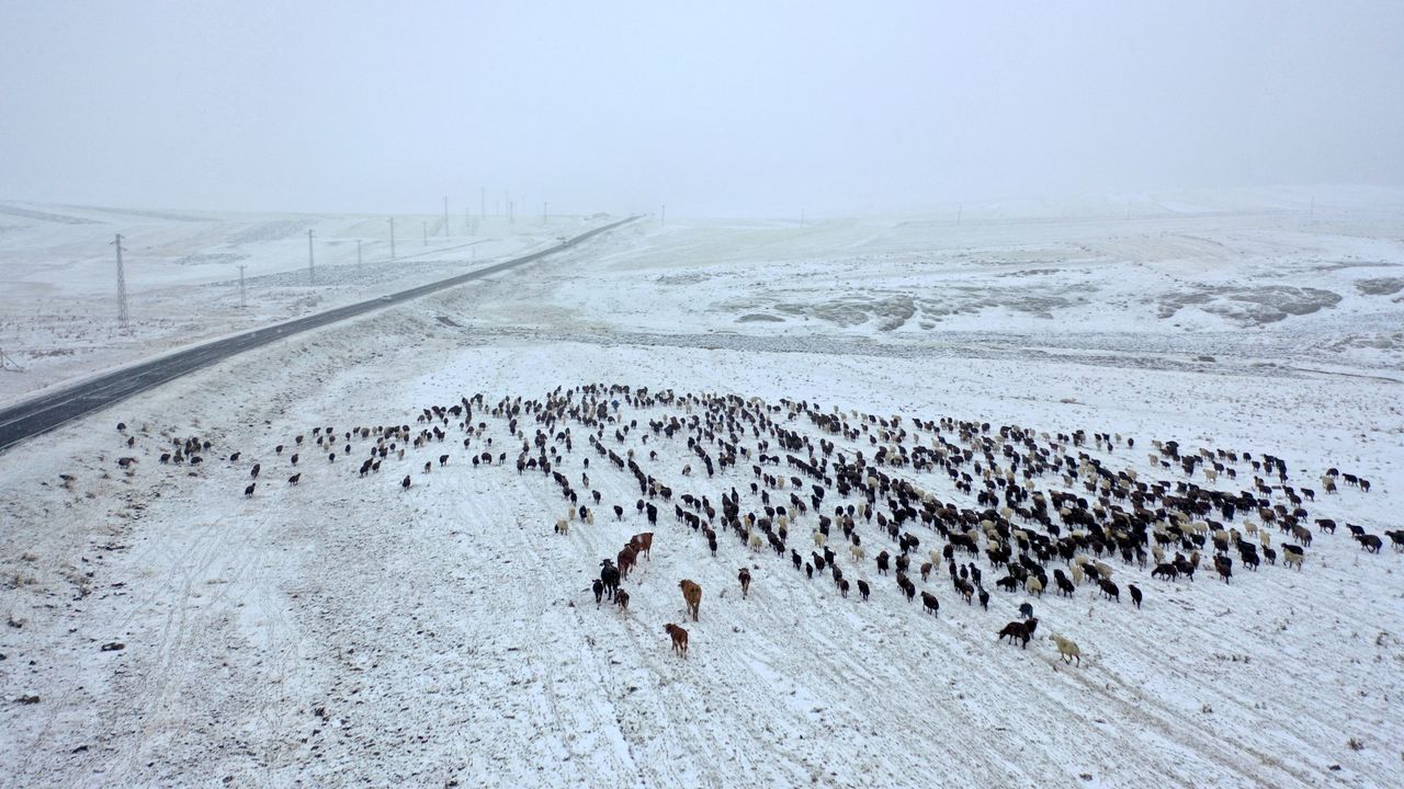 Kars-Göle kara yolunun 2 bin 300 rakımdaki Boğatepe Geçidi'nden geçen göçerlerden Polat Demirboğa, AA muhabirine, kar nedeniyle zor anlar yaşadıklarını belirterek, 'Kar yağışı nedeniyle yaylada mahsur kaldık. Hayvanlarımızı köye indiriyoruz. Kar yağışı gece başladı sabaha kadar sürdü.' dedi.