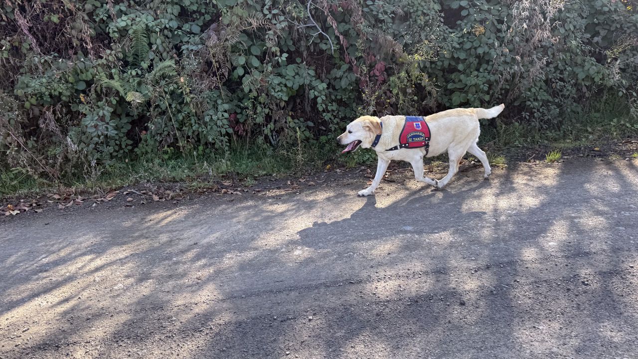 AFAD ekipleri tarafından engebeli ve ormanlık arazide dron ile havadan da arama yapılıyor. Jandarma arama kurtarma köpekleri de çalışmalara eşlik ediyor.
