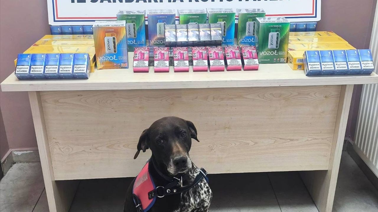 Çay ve tütün tespit köpeğinin tepki vermesi üzerine araçlarda yapılan aramada, 250 paket bandrolsüz sigara ve 77 kaçak elektronik sigara ele geçirildi.