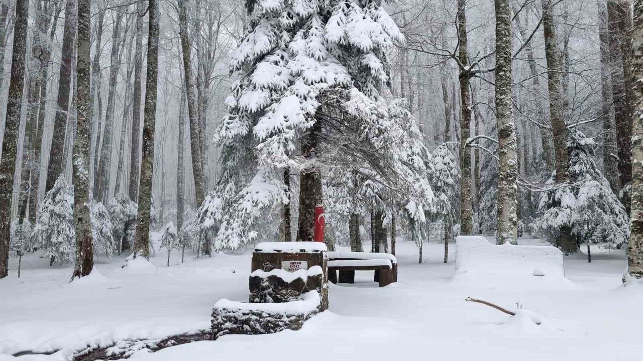 Karla kaplanan ormanlık alanlar, ağaçların üzerini saran beyaz örtü ve sisle birleşen manzaralar görsel şölen oluştururken, bölge hem fotoğraf tutkunları hem de doğaseverler için cazibe merkezi haline geldi.