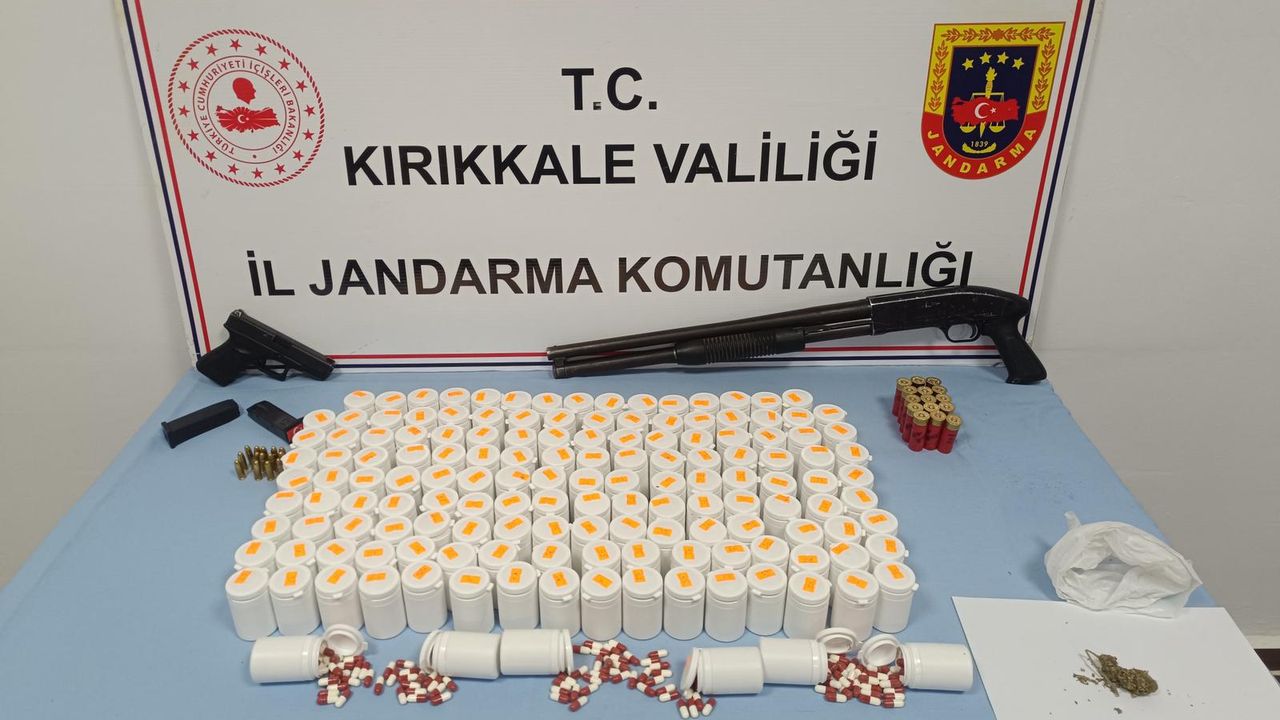 KIRIKKALE (AA) - Kırıkkale'nin Keskin ilçesinde bir evde 8 bin 252 sentetik uyuşturucu hap, ruhsatsız tabanca ve pompalı tüfek ele geçirildi, 1 zanlı gözaltına alındı.