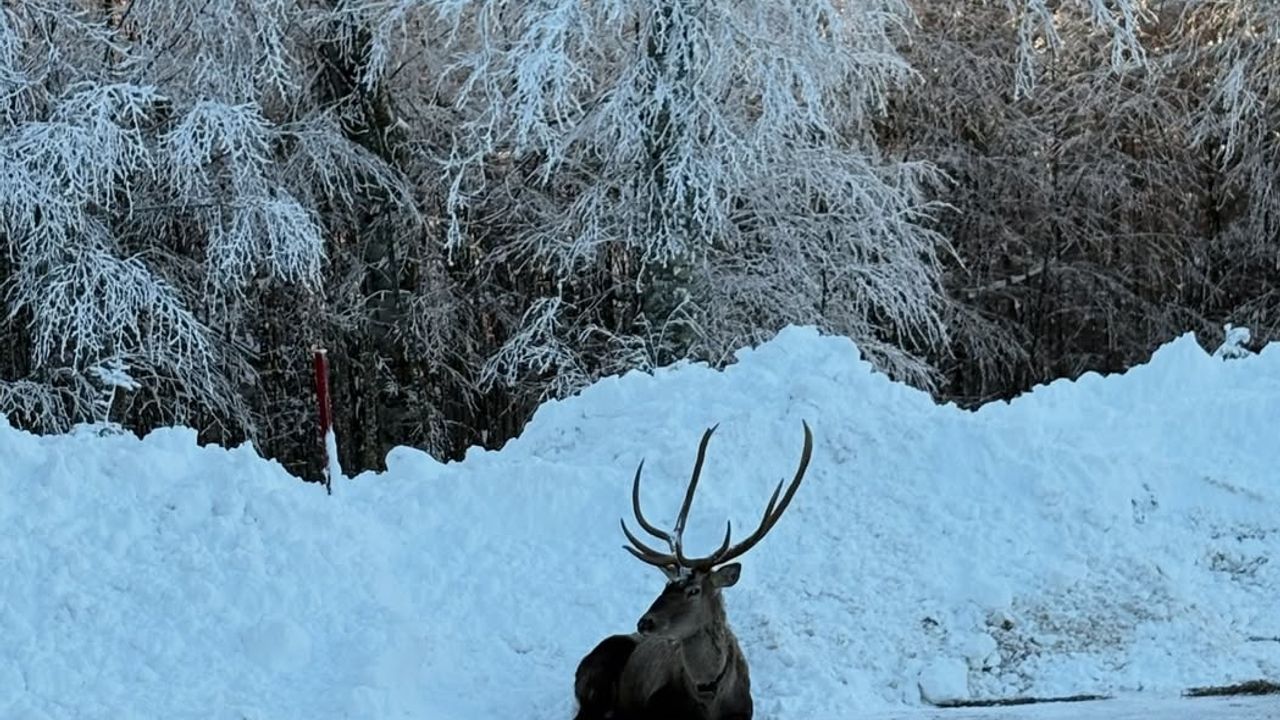 Karla kaplı yaylada gezen kızıl geyik, bölgedeki belediye çalışanı tarafından cep telefonuyla görüntülendi.