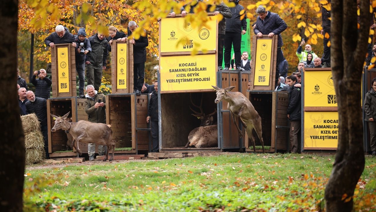 Kartepe ilçesi Kuzuyayla Tabiat Parkı'nda düzenlenen programda, geçen yıl salınan 15 kızıl geyiğin ardından bugün de 7 geyik daha doğaya bırakıldı. Proje kapsamında gelecek ay 8 kızıl geyiğin daha doğayla buluşmasıyla sayı 30'a ulaşacak.
