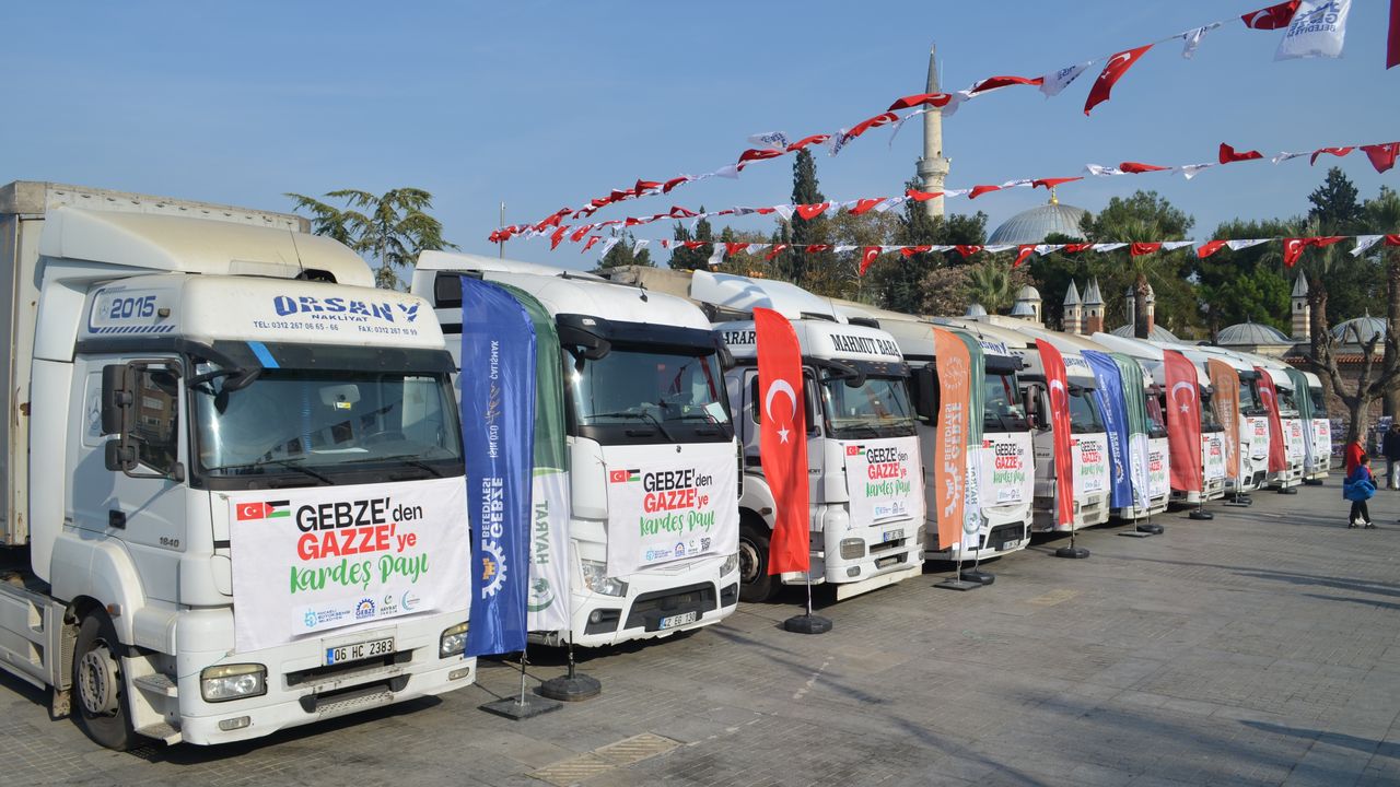 KOCAELİ (AA) - Gazze'ye insani yardım amacıyla Kocaeli'nin Gebze ilçesinde hazırlanan 10 yardım tırı törenle yola çıktı.