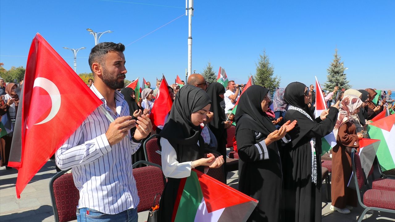 HAK İnsani Yardım Derneği öncülüğünde, birçok kurum ve sivil toplum kuruluşunun desteğiyle Edremit ilçesinde Van Gölü kıyısındaki Kent Meydanı'nda bir araya gelen vatandaşlar, İsrail aleyhine slogan attı.