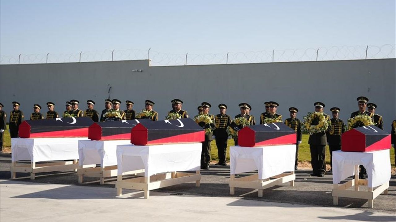 Libya askeri heyetinin naaşlarının başkent Trablus'a ulaşmasının ardından Savunma Bakanlığında askeri tören düzenlendi.