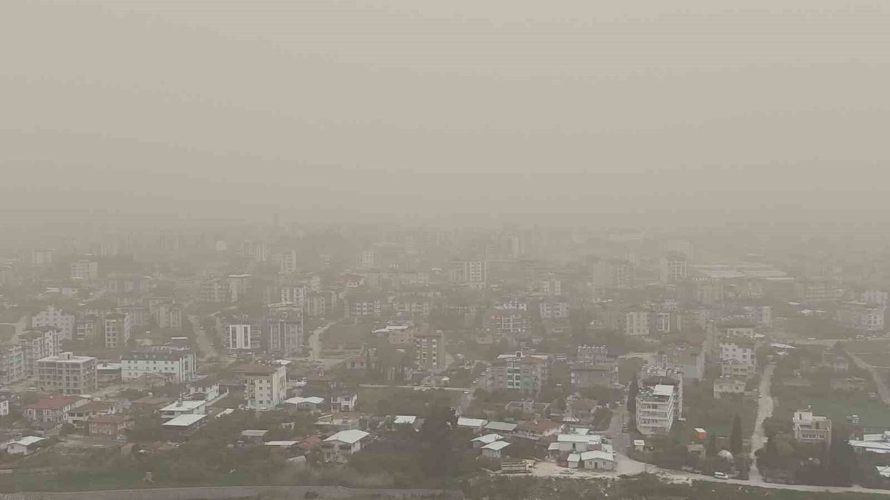 Libya üzerinden kuvvetli rüzgarla birlikte Türkiye'ye giriş yapan çöl tozu ülkenin en güneyinde yer alan Hatay'da etkisini gösterdi. Havadan çekilen görüntülerde çöl tozunun şehri içine aldığı görüntülendi.