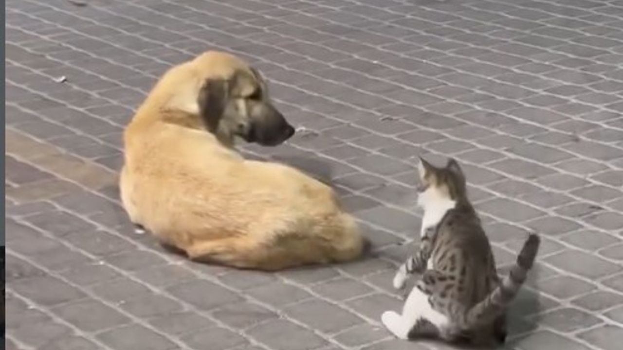 O anlara tanık olanlar, iki hayvan arasında yaşanan bu masum çekişmenin dostça bir oyun olduğunu söylerken, görüntüler sosyal medyada “mahalle komedisi” yorumlarıyla paylaşıldı