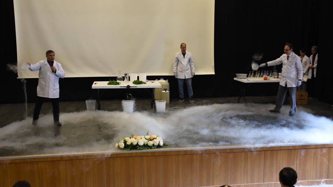 İnönü Üniversitesi Fen Edebiyat Fakültesi Kimya Bölümü Öğretim üyeleri Prof. Dr. Ahmet Gültek ile Prof. Dr. Süleyman Köytepe, konuşmaların ardından çeşitli deneyler gerçekleştirdi.