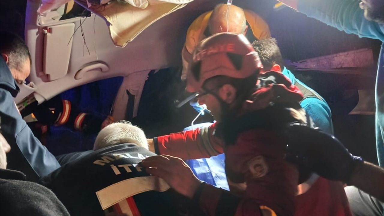 Kazaya 3 ekiple müdahale eden itfaiye ekipleri, araçta sıkışan sürücü M.D'yi kurtardı.