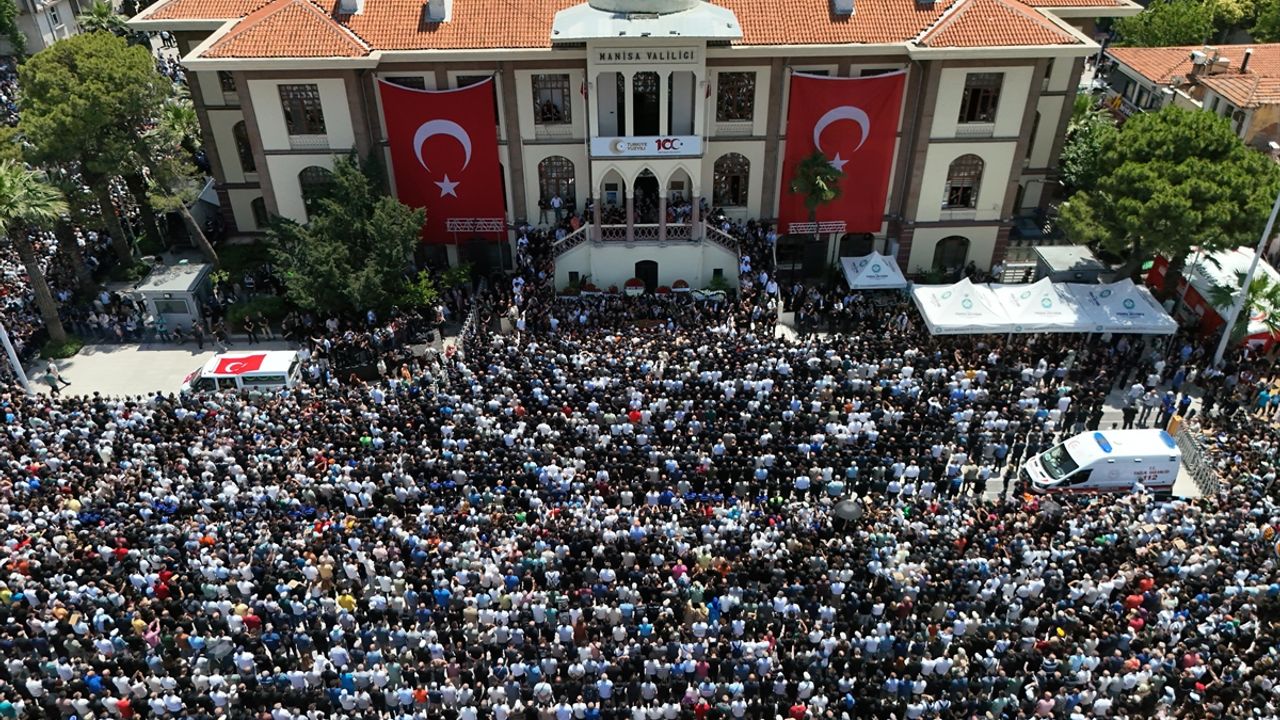 Cenaze törenine katılan çok sayıda vatandaş zaman zaman 'Manisa seninle gurur duyuyor', 'Büyük başkan' sloganları attı, alkış ve tekbirler eşliğinde araca eşlik etti.