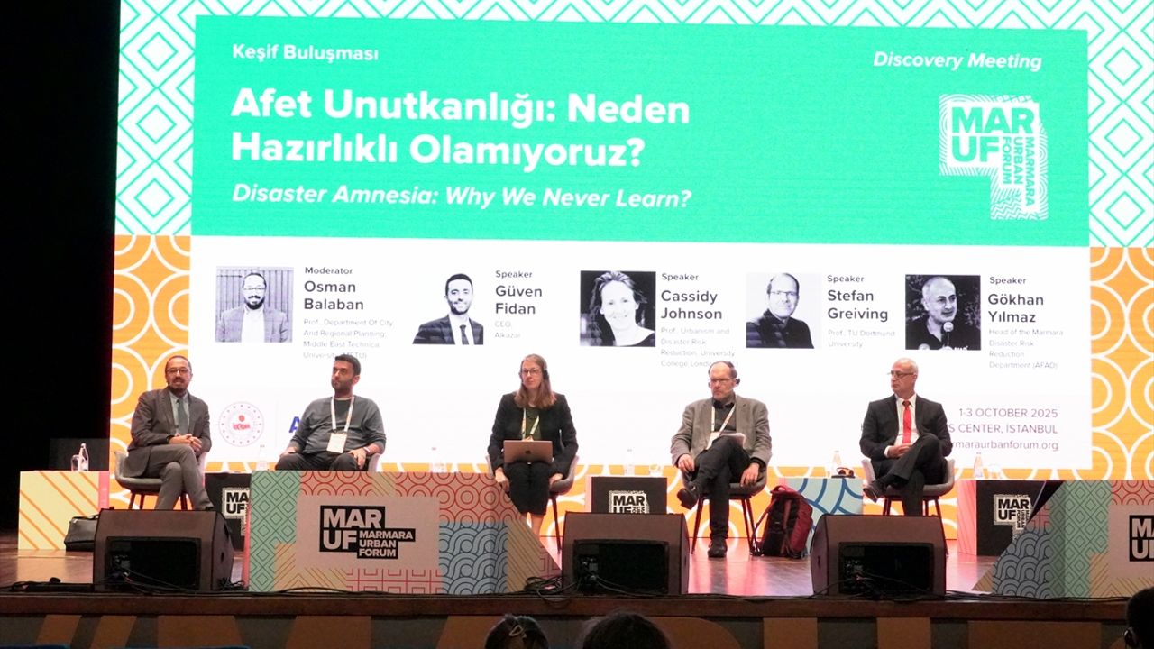 Forumun ikinci gününde, Orta Doğu Teknik Üniversitesi Şehir ve Bölge Planlama Bölümü Öğretim Üyesi Prof. Dr. Osman Balaban'ın yöneticiliğinde, Dortmund Üniversitesinden Prof. Dr. Stefan Greiving, University College London'dan Prof. Dr. Cassidy Johnson, AFAD Marmara Afet Risklerini Azaltma Dairesi Başkanı Gökhan Yılmaz'ın katılımıyla 'Afet Unutkanlığı: Neden Hazırlıklı Olamıyoruz?' başlıklı oturum düzenlendi.