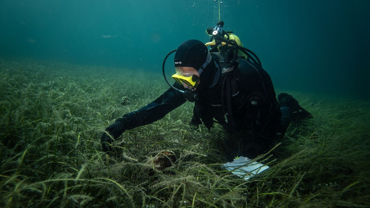 İSTANBUL (AA) - ŞADUMAN TÜRKAY - Marmara Denizi son sığınağı haline gelen, saatte 6 litre deniz suyunu filtreleyebilen pina midyelerini koruma çalışmaları kapsamında geliştirilen PİNA-İZ projesiyle bebek pina sayısı 10'a çıkarken, AA ekibi güncel ölçümlere eşlik edip gelişmeleri su altında anons çekerek aktardı.