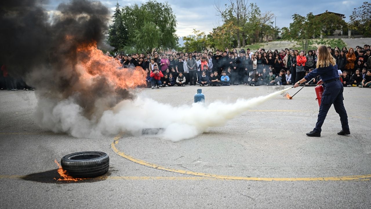 Ankara Haydar Aliyev Ortaokulu'nda da MEB Arama ve Kurtarma Birimi (AKUB) Ankara üyeleri, Afet ve Acil Durum Yönetimi Başkanlığı (AFAD) il müdürlüğü personeli ve Ankara Büyükşehir Belediyesi (ABB) itfaiye birimi tarafından afet farkındalık eğitimi düzenlendi, deprem tahliye ve yangın söndürme tatbikatları yapıldı.