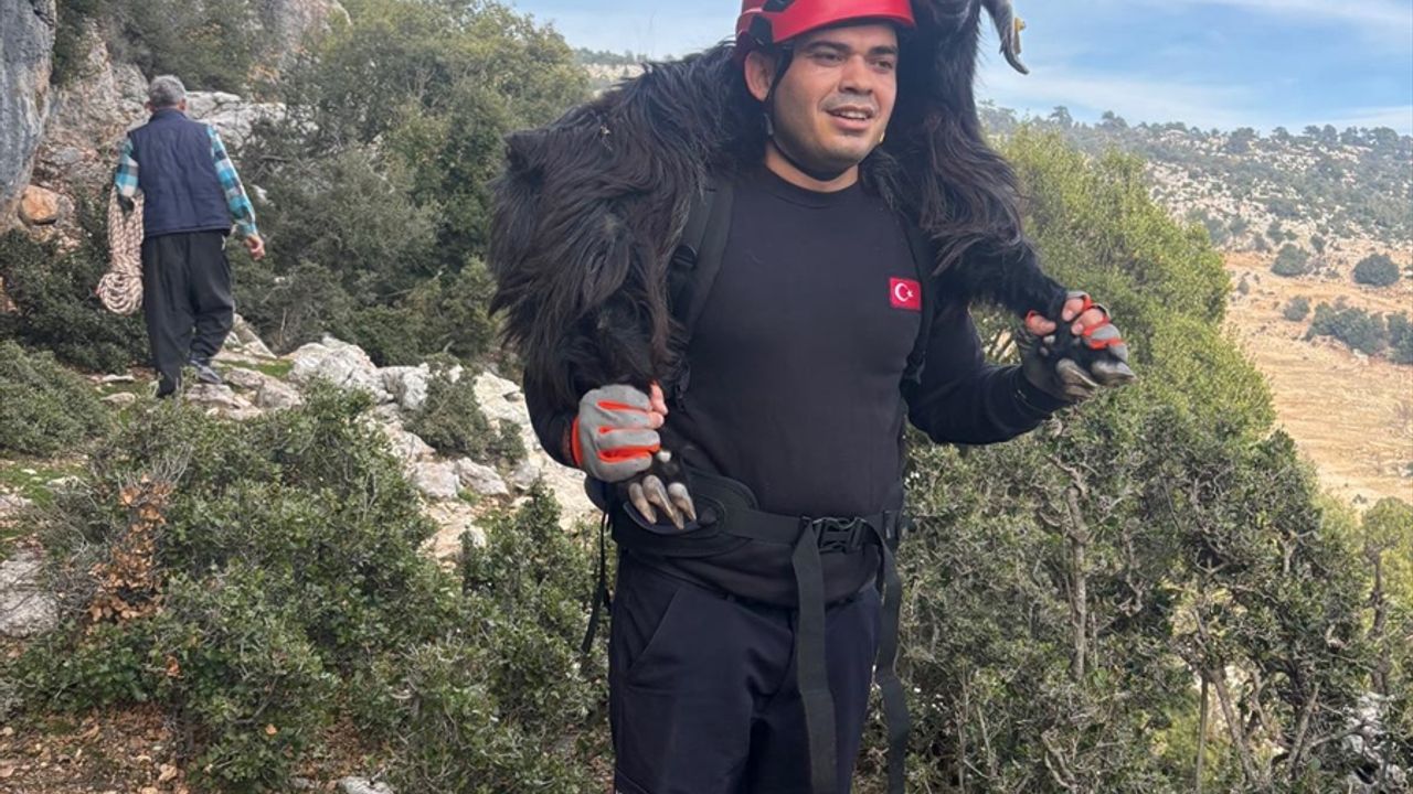 İhbar üzerine bölgeye yönlendirilen Büyükşehir Belediyesi İtfaiye Arama Kurtarma ekipleri, Karabulut rehberliğinde yaklaşık 50 dakika süren yürüyüşün ardından keçilerin bulunduğu noktaya ulaştı.