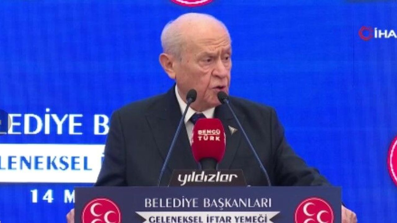 Milliyetçi Hareket Partisi Genel Başkanı Devlet Bahçeli, partisinin belediye başkanları ile iftar programında bir araya geldi. Programda konuşan Bahçeli, "Sözlerimin hemen başında şu hakikatin altını kalın şekilde çizmek isterim; içinden geçtiğimiz dönem sıradan bir zaman dilimi değildir. Zamanın akışı hızlanmış, coğrafyanın dili sertleşmiş, siyasetin yükü ağırlaşmıştır. Haritalar yerinde duruyor gibi görünse de haritaların arkasındaki kudret terazisi derin mahfiller tarafından yeniden kurulmaktadır. Devletler aynı sınırlarla tanımlanıyor ve anılıyor olsa da güvenlik kuşakları yer yer daralmakta, yer yer genişlemekte ve yer yer de kırılmaktadır" diye konuştu.