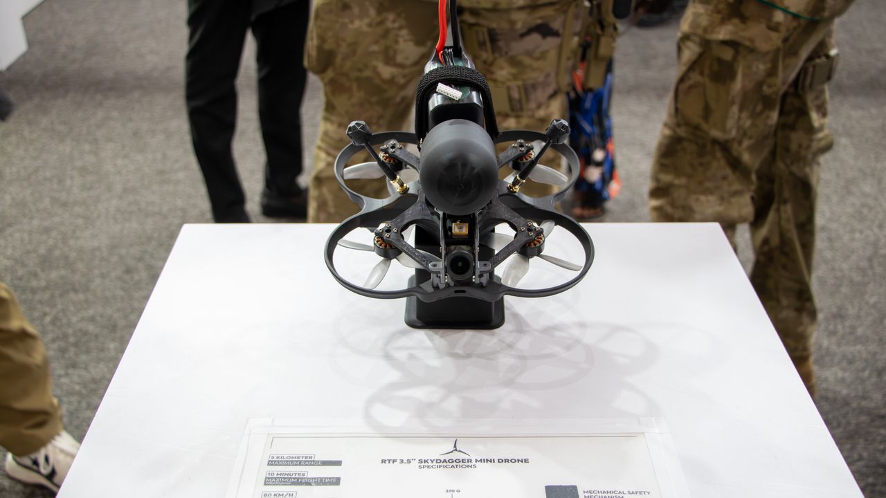 Gözlük veya ekran aracılığıyla sanki dronun içinde uçuyormuş gibi kullanılan FPV kamikaze dron üretimine yönelik olarak geçen yıl faaliyete başlayan ve farklı boyutlardaki çözümlerle bir ürün ailesi oluşturan SkyDagger, Mali'de bu yıl ilk kez yalnızca Türk firmalarının stantlı katılımıyla The Peak Defense tarafından düzenlenen BAMEX'25 Fuarı'nda ürün ve kabiliyetlerini tanıttı.