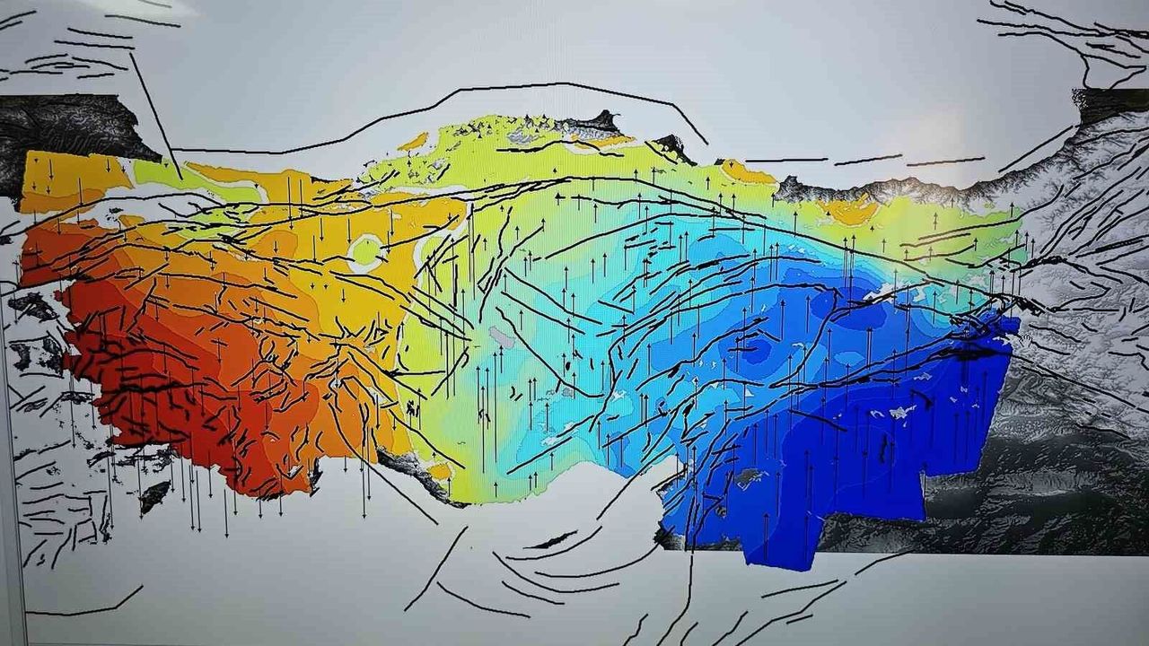 Türkiye'nin doğusunun kuzeye, batısının ise güneye hareket ettiğini belirten Kutoğlu, 'Uzun yıllardır uydu radar verisiyle Türkiye'nin yer kabuğu hareketlerini inceliyoruz. Bu yer kabuğu hareketlerini daha derin bir analize tabi tuttuğumuzda, Ankara'nın doğusunda kalan kısmının kuzeye doğru hareket ettiğini, batısında kalan kısmının da güneye doğru hareket etmiş olduğunu tespit ettik. Tabii bunun neticesinde de Antalya'dan yukarıya doğru, Karadeniz Ereğli'ye doğru bir beyazla görmüş olduğumuz bir sıfır hattının olduğunu tespit ettik. Bu sıfır hattının doğusu yukarıya, batısı da aşağıya doğru hareket ettiği için sıfır hattı etrafında bir gerilim bölgesi meydana geliyor. Buna biz Orta Anadolu geçiş zonu adını verdik yaptığımız yayında. Bu Orta Anadolu geçiş zonu etrafında geçmiş yıllarda irili ufaklı depremler meydana gelmiş. Bu da bu hattın varlığını doğrular nitelikte. Bu durum bize şunu gösteriyor: Bu gerilim devam ettiği sürece, bu şekilde devam ettiği sürece, Türkiye'nin doğusu, Ankara'nın doğuda kalan kısmı yukarıya, batısında kalan kısmı aşağıya devam edecek ve bu milyonlarca yıllık bir süreç içerisinde bu miktar kilometrelere ulaşabilir ve neticesinde Anadolu'nun ortadan ikiye ayrılması söz konusu olabilir. İlerleyen zamanda, yüz binlerce yıl, milyonlarca yıldan bahsediyoruz, büyük gerilimler birikerek burada büyük boyutta depremlerin de meydana gelmesi söz konusu olabilir' ifadelerini kullandı.