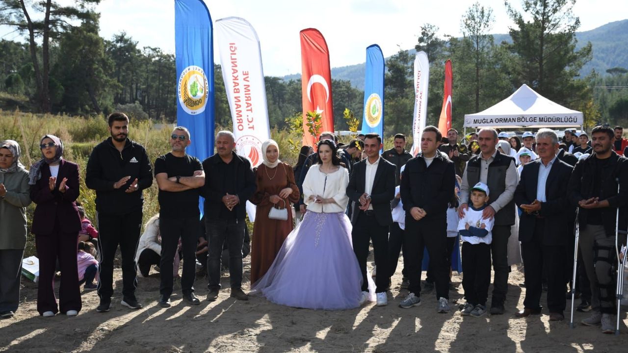 Evliliğe ilk adımı atacak Neslihan Barbarosoğlu ile orman işçisi Emre Yörük de fidanlarını toprakla buluşturarak anlamlı güne ortak oldu. Her bir fidan bir aileyi temsil ederken, dikilen fidanlara çiftlerin isimleri verildi.