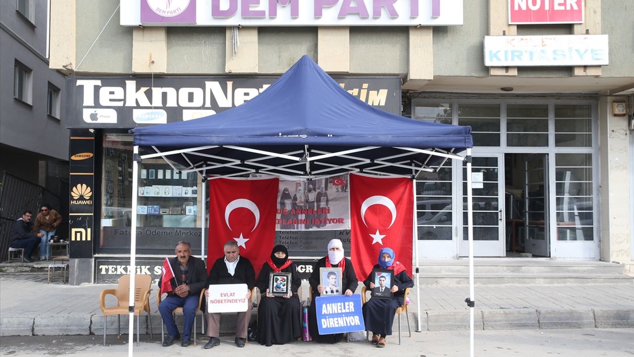 MUŞ (AA) - Muş'ta çocukları terör örgütü PKK tarafından kaçırılan aileler, DEM Parti İl Başkanlığı önündeki eylemlerine devam etti.