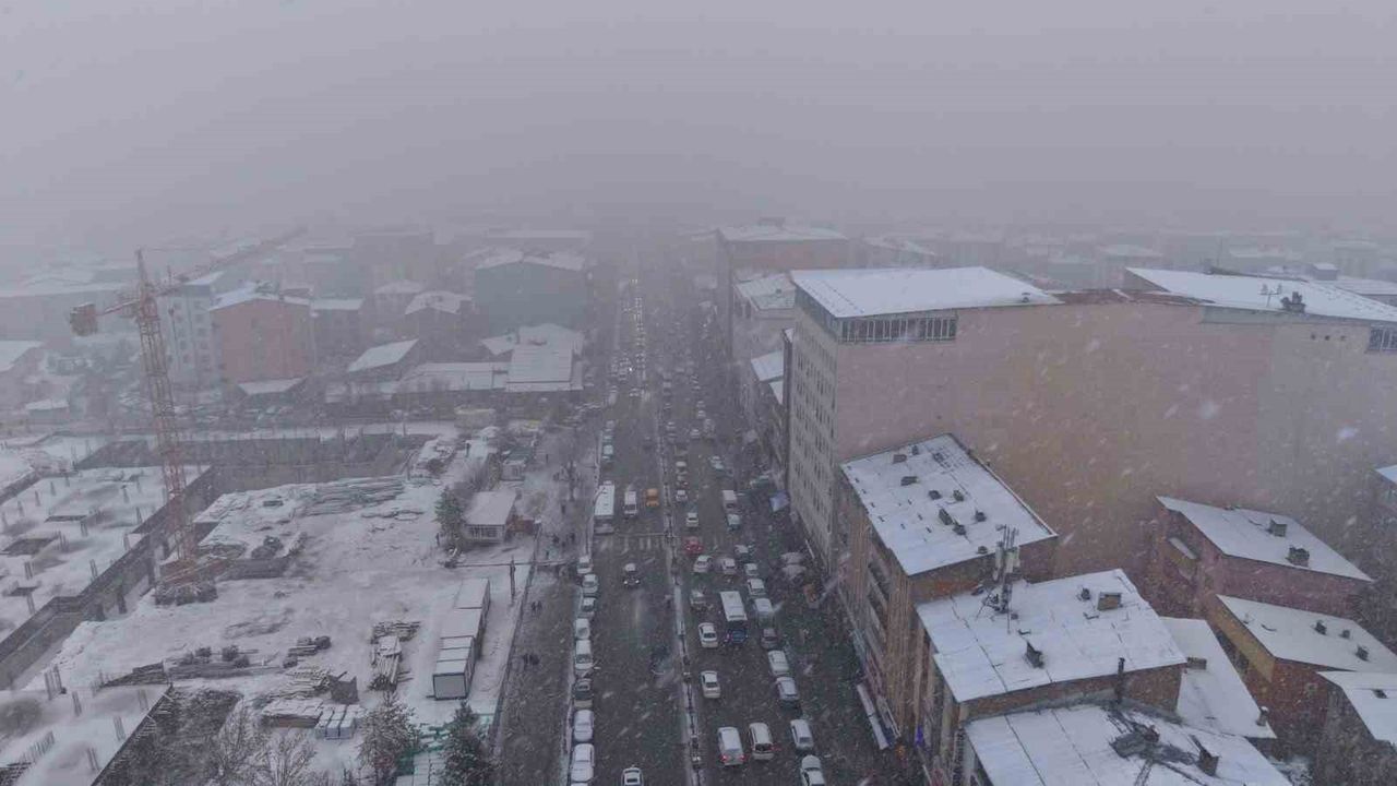 Muş'ta öğle saatlerinde başlayan yoğun kar yağışı kenti beyaza bürüdü.