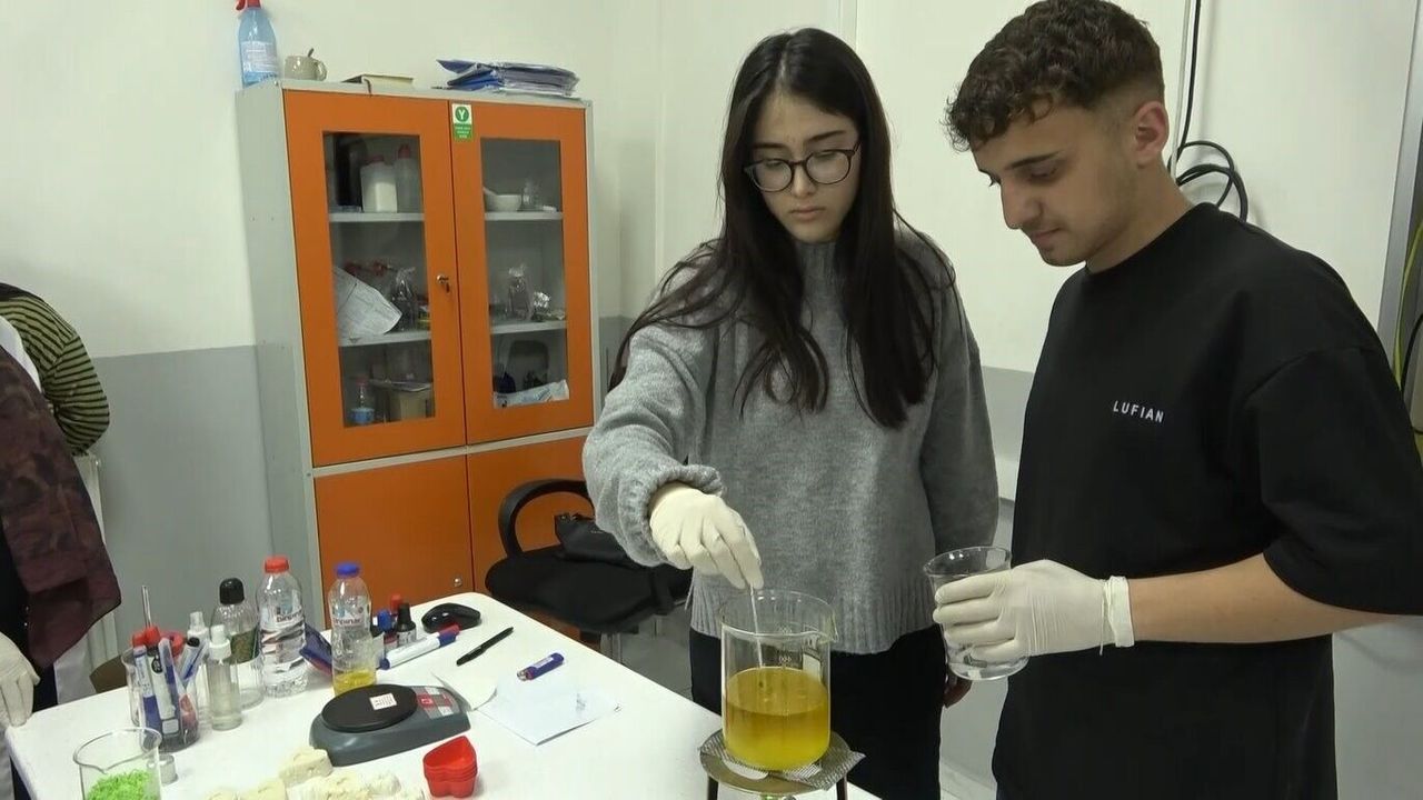 Kimya öğretmeni Hatun Çaldak, yaklaşık 5 yıldır öğrencileriyle birlikte geri dönüşüm temelli projeler yürüttüklerini belirterek, 'Şu an okulumuzun laboratuvarında sıvı sabunumuzu yapmaktayız. Bunu geçen sene atık yağlardan elde ettiğimiz katı sabunları belirli işlemler sonucunda sıvı sabun haline getiriyoruz. Bunu okulumuzun lavabolarında kullanmak üzere yaptık. Amacımız atık yağları çöpe atmamak, geri dönüştürmek ve katı sabunlarım kullanım süresi uzun olmadığı için sıvı sabun elde ederek daha uzun süreli kullanım sağlamak. Okulumuza 5 yıldır bu şekilde katkıda bulunuyoruz. Öğrencilerimiz bu konuda oldukça istekli ve özverili çalışıyor' dedi.
